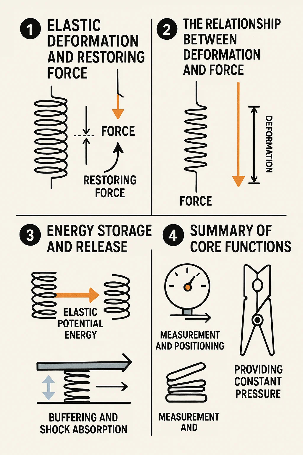 A spring is a common mechanical component, and its working principle is based on two core concepts: elasticity and the balance of forces. We can understand its mechanism in a very simple way.