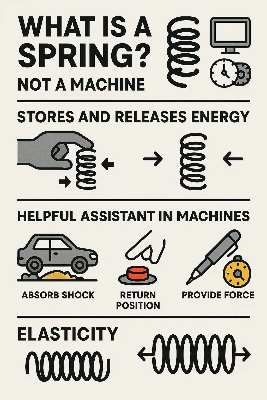 Although a spring itself is not a machine, it is a crucial "little helper" in machines, tools, and equipment because it can: